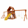 Детский городок изготовлен из северной древесины хвойных пород, обработанной безопасной декоративно-защитной пропиткой. Технология значительно увеличивает срок службы конструкций, повышает прочность древесины, защищает её от гниения и грибков. Обработка придаёт дереву приятный оттенок, проявляет и подчёркивает его текстуру. Используемая пропитка не содержит токсичных компонентов, экологична и абсолютно безопасна для ребёнка. Состав прошёл санитарно-эпидемиологическую экспертизу в Центре гигиены и эпидемиологии в г. Реутову.